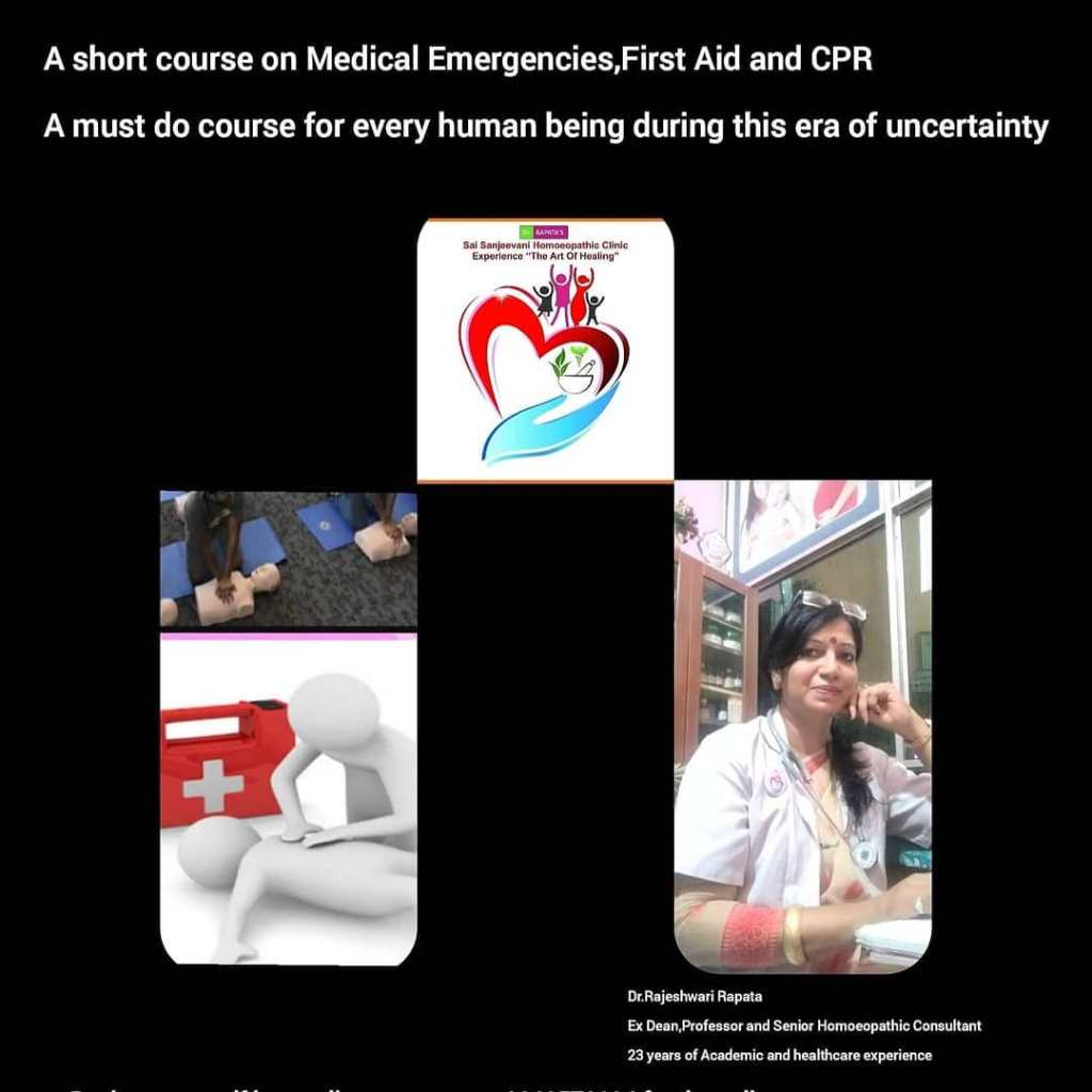 काय आपल्याला माहीती आहे वैद्यकीय आपात्कालीन स्थिती ,प्रथोमपचार ,CPR व त्यासाठी होमिओपथी औषधीची उपयुक्तता.तुम्ही कधी आपात्कालीन स्थितीला सामोरे गेला आहात का?तुम्हाला CPR म्हणजे काय माहीती आहे का?तुम्हाला माहीती आहे का होमिओपथीक औषधी वैद्यकीय आपात्कालीन स्थितीमधे रूग्णाला दीली असता आपण रूग्णाचा जीव वाचवु शकतो.चआपण या कोर्ससाठी आताच ऩोंदणी करा.मी डॉ. राजेश्वरी रापटा माजी अधिष्ठाता ,प्राध्यापक आणि जेष्ठ होमिओपथीक चिकीक्सक. मी वैद्यकीय प्रँक्टीस व वैदकीय शिक्षणक्षेञात गेली 23 वर्ष कार्यरत आहे.मला असे आढळुन आले आहे की खुप लोकांना आजारांविषयी माहीती नसते आणि वैद्यकीय आपात्कालीन स्थितीत ते घाबरुन जातात. त्याना वैद्यकीय सुविधा सहज उपलब्ध होत नाहीत कींवा ते छोटेमोठे आजारांत कोरोनामुळे हॉस्पिटल ला जाणे टाळतात.मी घरोघरी होमिओपथी असा उपक्रम सुरू केला आहे आणि लोकांना वैद्यकीय आपात्कालीन स्थितींविषयी ,प्रथोमपचार ,CPR आणि होमिओपथीक औषधी विषयी आँनलाइन वेबिनार आयोजित करुन प्रक्षिक्षण देत आहे.
